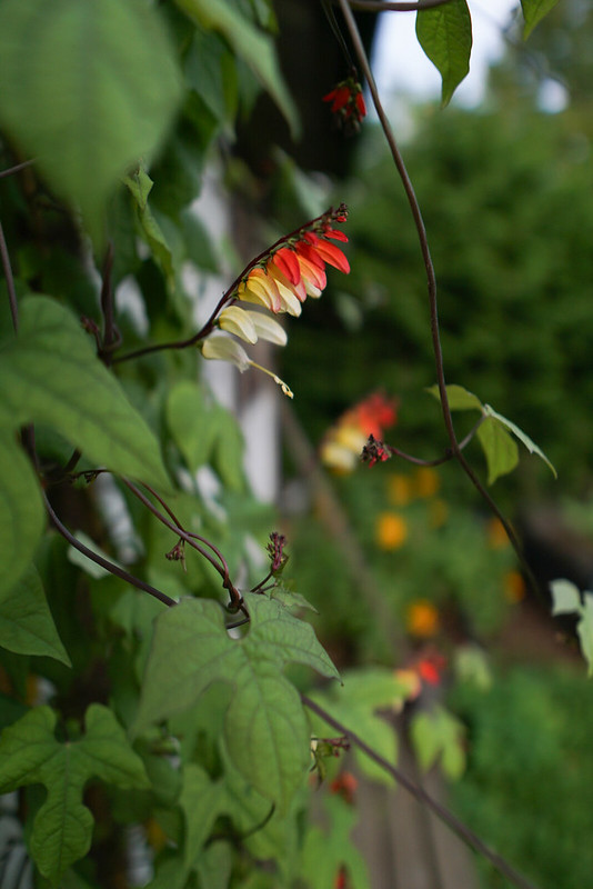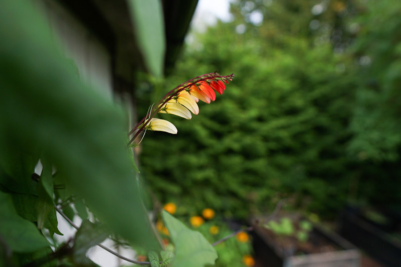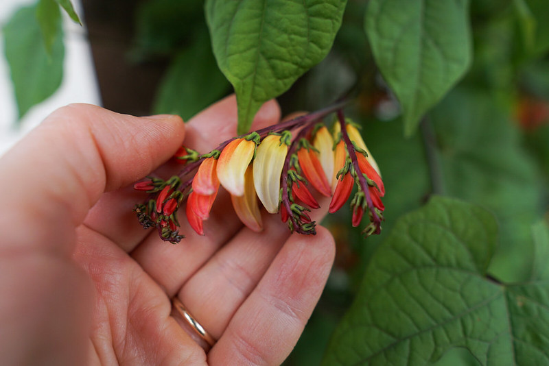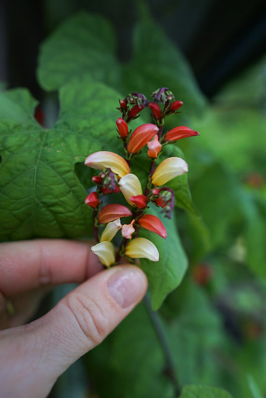 Kukkia alkoi lopulta ilmestyä ja sitä myöten sitten hedelmiäkin. Kasvissa oli samaan aikaan kukkia ja hedelmiä. Pepino on itsepölyttyvät. Toki kasvi eleli pihalla, eli saattoi joku pörriäinen käydä myös vähän tehostamassa pölytystä.